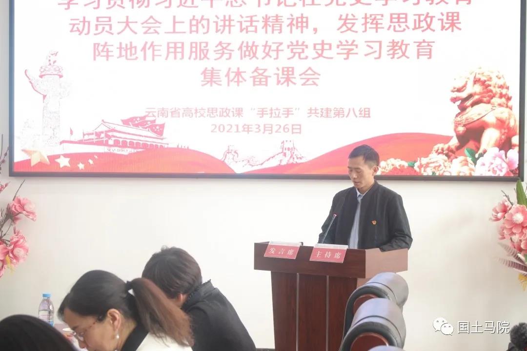 2021年3月26日,云南省高校思政课“手拉手”共建第八组集体备课会在云南新兴职业公司举行。此次备课会由昆明医科大学44118太阳成城集团主办,云南新兴职业公司承办,备课会主题为“学习贯彻习近平总书记在党史学习教育动员大会上的讲话精神,发挥思政课阵地作用服务做好党史学习教育”,44118太阳成城集团24名教师代表参加了此次共建活动。
