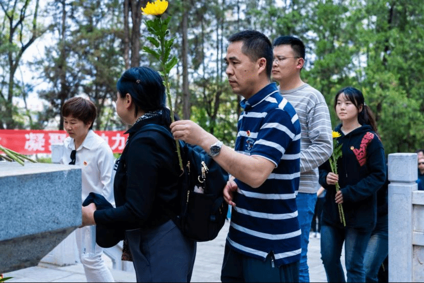 菊花朵朵,碑石磷磷。瞻仰完革命烈士纪念碑后,师生们又前往庄严静谧的烈士墓区,哀悼缅怀,表达对革命先烈的无限敬意和绵绵哀思。
