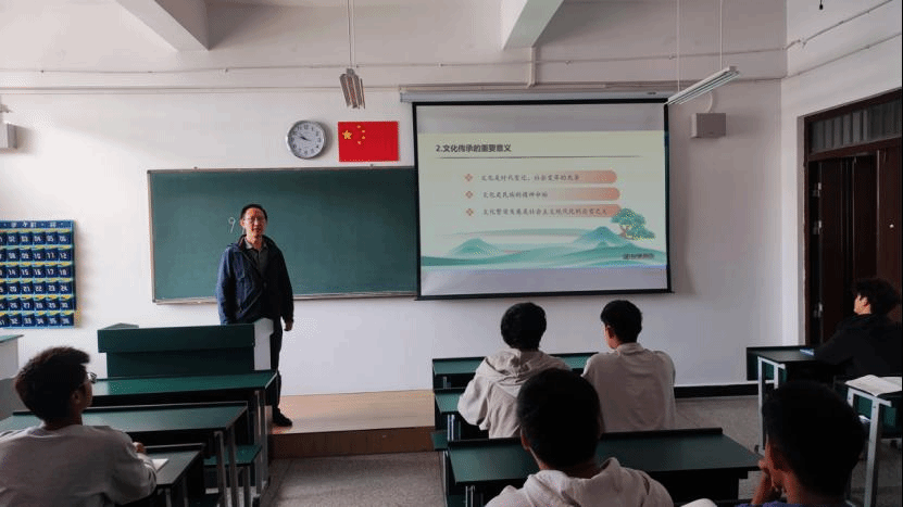 党委委员、组织部部长董云以“赓续历史文脉 谱写当代华章”为题,讲述了中华文明的五个突出特性紧密联系、有机统一,提出当前我国文化事业繁荣发展的现状及新时代新的文化使命。让同学们认识到在新的起点上继续推动文化繁荣、建设文化强国、建设中华民族现代文明,要坚定文化自信、秉持开放包容心态、坚持守正创新,不断铸就中华文化新辉煌、谱写民族复兴新华章。