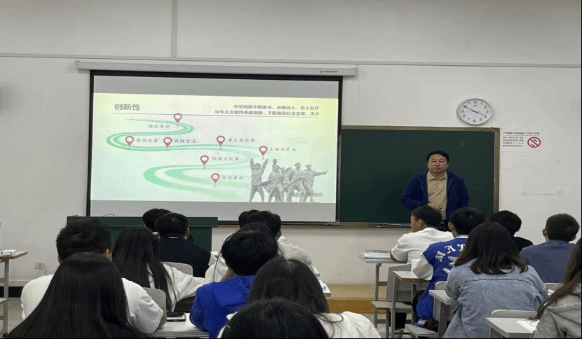 党委副书记李昆峰以“加快建设教育强国、科技强国、人才强国”为题,从着眼长远发展的重大抉择、铸就强国建设的坚实基础、加快强国建设的战略部署、充分发挥高校的重要作用等方面进行了讲解。授课过程中,充分进行案例分析,深入浅出地为同学们进行了阐释。