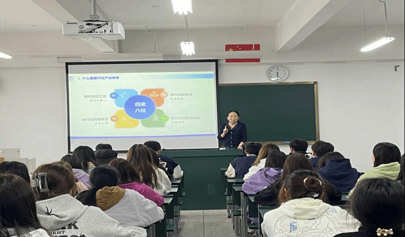 党委副书记、董事长陈颖以“你对产业的了解有哪些?”为导入,从现代化产业体系的深刻意蕴、产业体系建设的现状与挑战、现代化产业体系建设的着力点等方面,结合员工专业实际、职业教育与产业关系、云南的“产业强省”战略等,采用大量实例,为员工讲解了“大力推进现代化产业体系建设”专题。