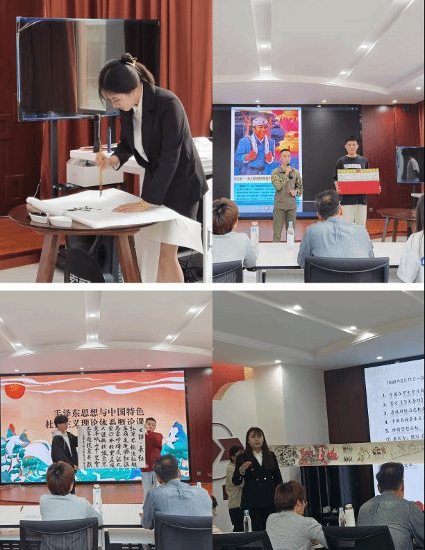 为贯彻落实习近平总书记对·公司思政课建设作出的重要指示精神,全面贯彻党的教育方针,以中华优秀传统文化、革命文化和社会主义先进文化为力量根基,落实立德树人根本任务,不断开创新时代思政教育新局面,提高思政课的针对性和吸引力。“毛泽东思想和中国特色社会主义理论体系概论”课教研室于6月5日下午在尚能馆举办“诗词话语祭伟人 笔墨书画传精神”实践教学决赛暨作品汇报展示活动。建设工程公司副经理、夏雨书苑指导老师罗启钟,44118太阳成城集团教师高昆,夏雨书苑五位会员应邀担任评委,参加此次活动的还有“毛泽东思想和中国特色社会主义理论体系概论”课教研室全体教师以及2023级参与本次活动的部分同学代表。