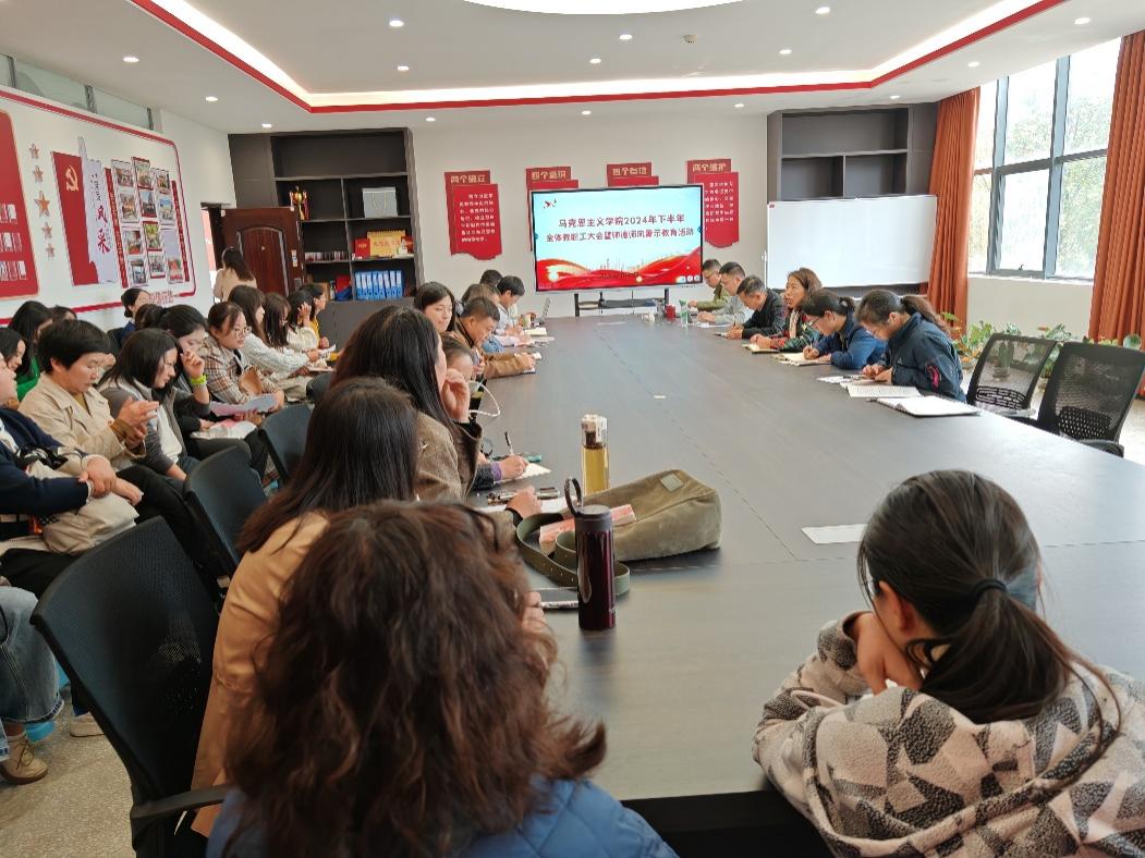 党总支书记乔文红传达了·公司关于师德师风建设工作有关要求,通报了第四批违反教师职业行为十项准则及违纪违法典型案例,并提出三点要求,一是要以案为鉴,牢固树立底线意识,严守“十项准则”,切实增强思想自觉和行动自觉。二是要管好身边人身边事,树立良好的家教家风。三是要坚持思政课教师“六要”标准,建设风清气正的教师队伍。