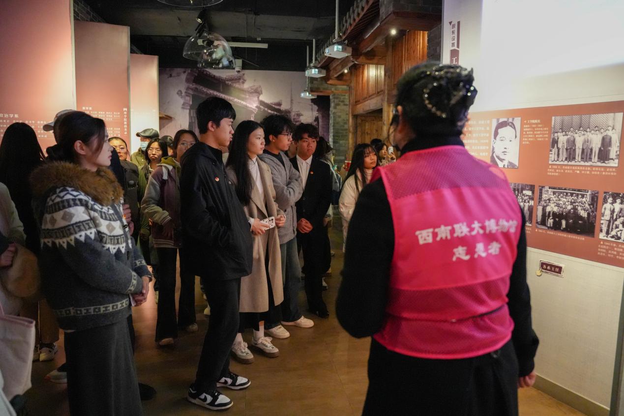 西南联大博物馆是传承和弘扬西南联大精神的重要场所。在博物馆讲解员的引导下,师生们沿着历史脉络,深刻了解了西南联大在抗战时期辗转迁移、坚持办学的艰辛历程,感悟到了联大师生“为国读书、为民请命”的家国情怀。馆内丰富的展品、珍贵的历史照片和翔实的文字资料,生动地展现了西南联大师生在艰苦环境中爱国奉献、坚守学术、追求真理的崇高精神风貌。