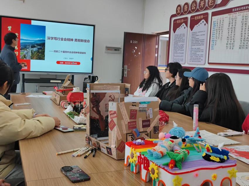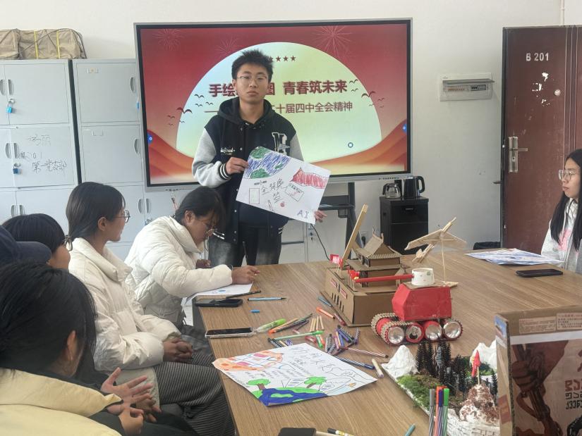 为深入学习贯彻党的二十届四中全会精神,凝聚青年力量,号召广大学子“立报国强国大志向 做挺膺担当奋斗者”,44118太阳成城集团于12月24日举办“手绘新蓝图 青春筑未来”师生座谈会。师生代表通过理论学习与创意实践相结合的形式,共话青年使命,共谋青春担当。
