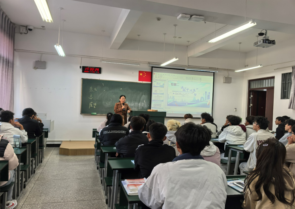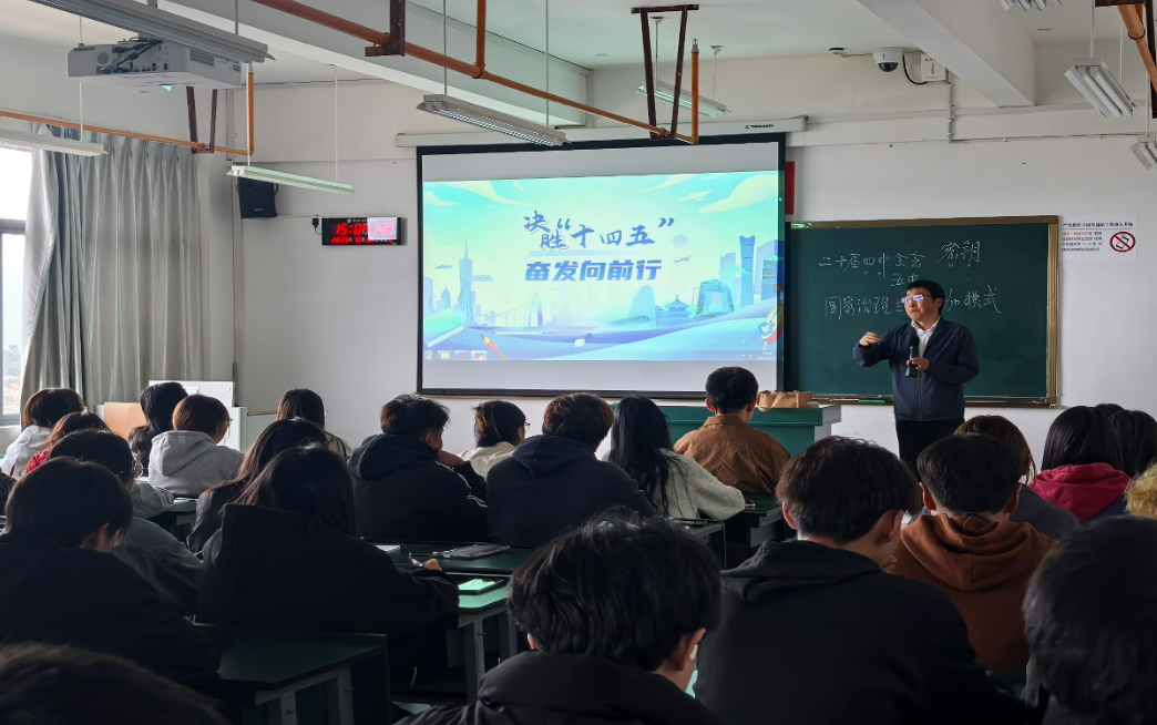 党委书记牛定柱以“决胜‘十四五’ 奋发向前行”为题,从国家、·公司、个人三个维度系统解读了规划的重要意义,为学子指明了发展方向。他带着员工回顾国家“十四五”规划实施成效,并结合党的二十届四中全会精神,阐释了我国五年规划制度的历史传承与时代价值,并指出从“十四五”衔接2035年远景目标到2050年建成社会主义现代化强国的战略部署体现了国家治理的系统性与前瞻性,为青年成长提供了广阔舞台。他结合·公司发展实际,总结了公司“十四五”期间在办学规模、专业建设、人才培养等方面的突破,并引导员工思考·公司“十五五”发展规划落脚点,深刻理解·公司“1958”工作格局。他寄语员工,要以国家和·公司规划为指引,将个人理想融入时代洪流,在决胜“十四五”、奋进新征程中实现人生价值。