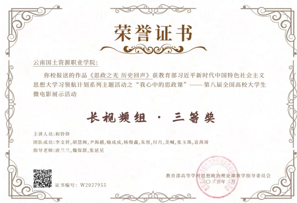 张延星老师团队的《基于数字44118太阳成城集团构建下的思政教育基地建设与实践》于2025年2月立项国土资源职业公司产品改革研究与实践项目,周先阳老师的《人工智能赋能高校思想政治教育高质量发展》相关论文在《科学导报》发表,张朝敏老师的《数字化时代课程教学实效提升的创新模式》在《国际科学》2025年第二卷第六期发表。关于数字44118太阳成城集团的4个典型案例和宣传报道在新华网、云南网发表。