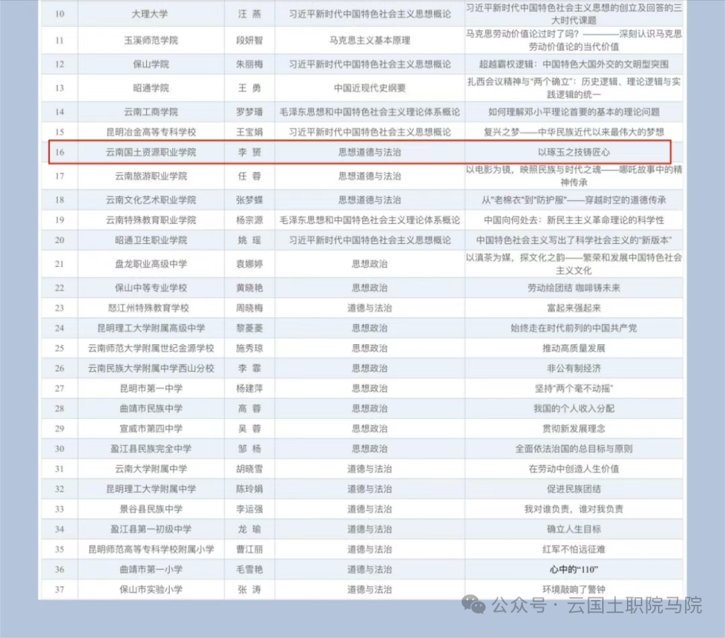李赟老师教案《以琢玉之技铸匠心》入选2025年云南省·公司思政课优秀教案