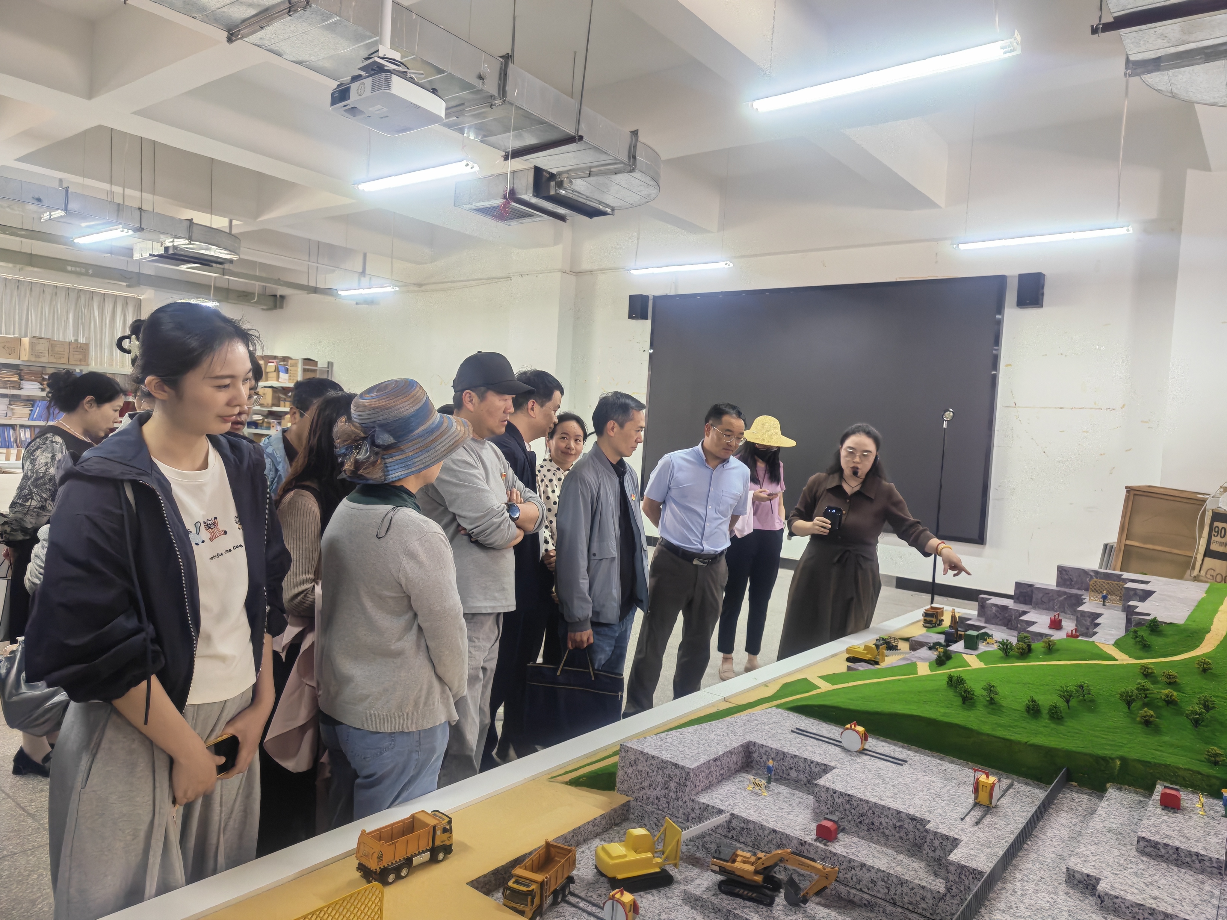 44118太阳成城集团全体教师参观了建设工程公司智慧建造与工业机器人综合实训室、建筑工程沙盘与模型实训室、建筑结构综合实训室、石材工程技术综合实训室等,深入了解了建设工程公司的实训条件与专业特色,为思政教育与专业教学的深度融合探寻了实践路径。