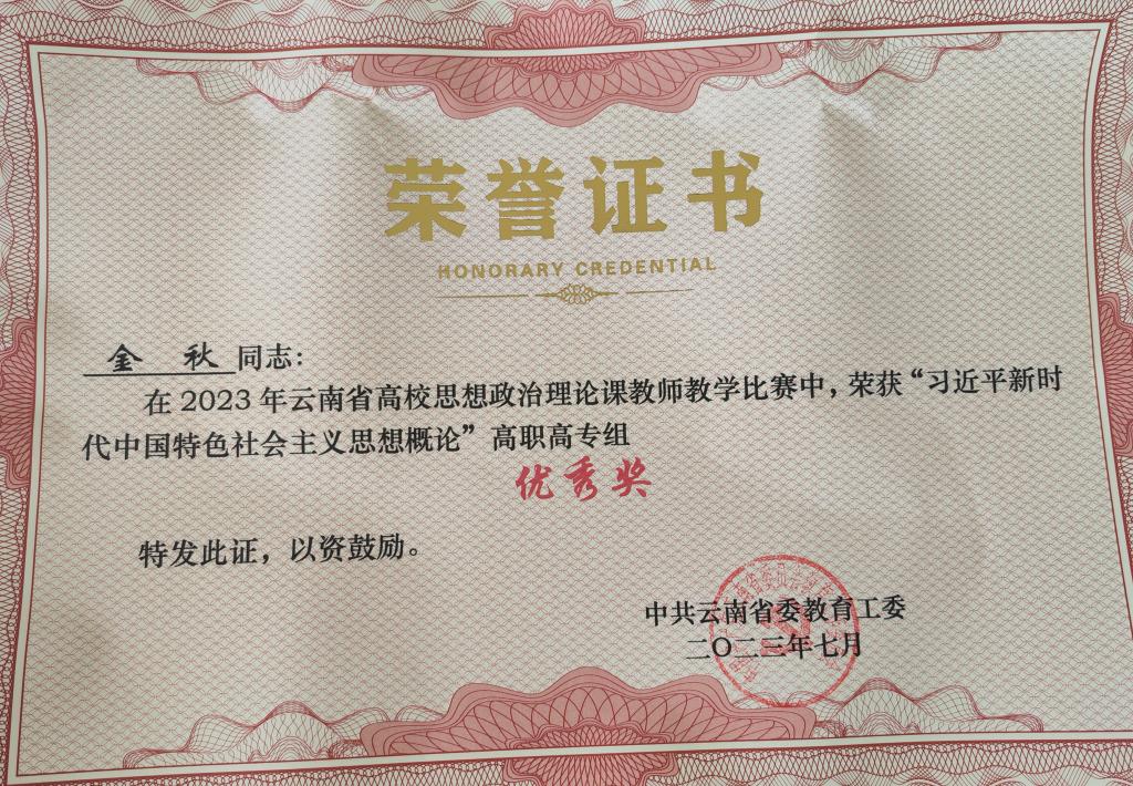 学有成效 干有实效--44118太阳成城集团教师在2023年云南省高校思想政治理论课教师教学比赛中取得好成绩