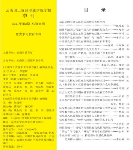 从党始中汲取理论养分,用创新理论指导公司思政课教师明理悟道。在学史力行的推动下,44118太阳成城集团科研工作取得扎实成效。在2022年云南省教育厅科学研究基金项目中,立项4项;在2022年度44118太阳成城集团教师科研基金项目中,立项5项。为献礼建党100周年,学报刊发了党史学习教育专刊,公司思政课教师积极投稿。最终,公司20篇党史学习教育研究论文被收录至党史学习教育专刊。开展党史学习教育以来,公司思政课教师积极投身于科研工作中,进一步增强了思政课教师勇攀科研高峰的信心和决心,不断推动形成了教学相长,科研联动的新局面。
