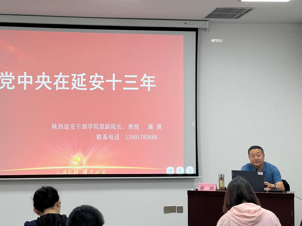 开班仪式后,延安干部公司原副经理、康琪教授以《中共中央在延安十三年》为题进行授课。康琪教授用高度精炼的语言总结了党中央在延安13年取得的辉煌功绩,并就整风运动、大生产运动、六届六中全会、中共七大等重要环节展开详细解说,真实再现了中国共产党由弱变强、转败为胜,突围重重困境取得辉煌胜利,并由延安开始走出中国、走向世界的历程,生动而朴实的语言赢得全场参会人员阵阵掌声。最后,康琪教授结合党中央在延安13年的基本经验,就新时代基层党员干部如何践行延安精神提出建议,强调在新的时代,基层党员干部需要更加注重民生问题,牢记全心全意为人民服务的根本宗旨,把以人为本的改革发展理念真正落到实处。