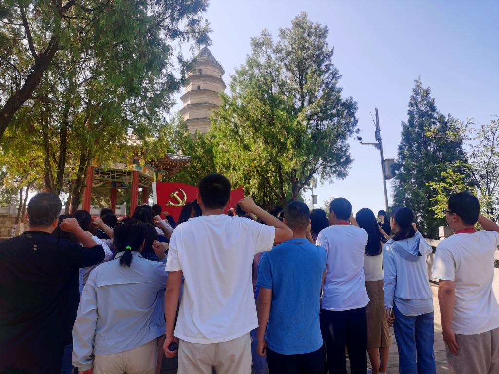上午,全体学员齐聚于象征着中国革命精神的宝塔之下。“抗战期间,通往延安之路荆棘密布,但这里是爱国志士心中的圣地。”讲解员深情讲述道。聆听完讲解后,学员们在塔下重温入党誓词,做到不断增强党员意识。
